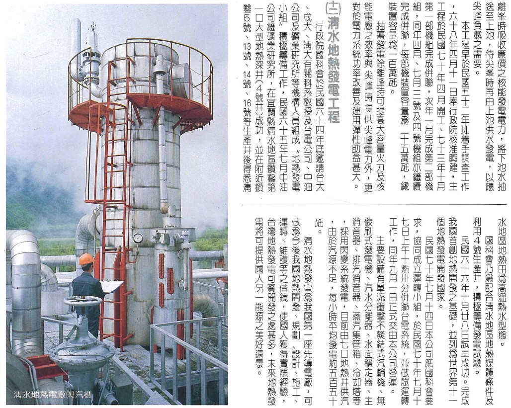 《台電四十年》當中關於清水地熱發電廠的報導。(圖像來源:《台電四十年》)