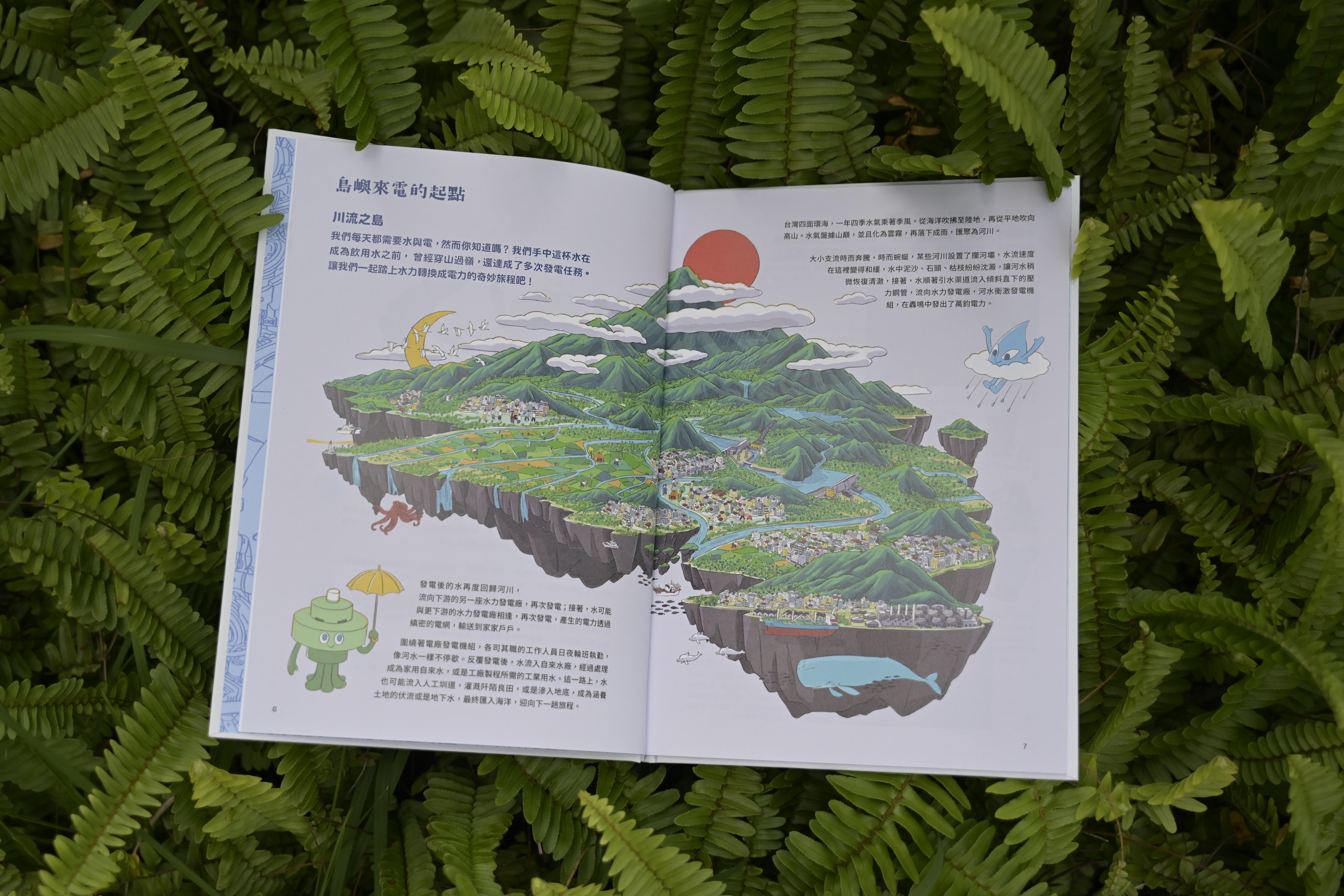 水力發電作為台灣最早期投入運轉的電力型態,見證了台灣產業發展進程,為紀錄這段珍貴歷史記憶與社會大眾分享,台電攜手文化內容創作團隊,歷時一年實地走訪電廠取材,推出第一本電業文史科普繪本《島嶼來電:台灣水力發電時空旅讀》。
