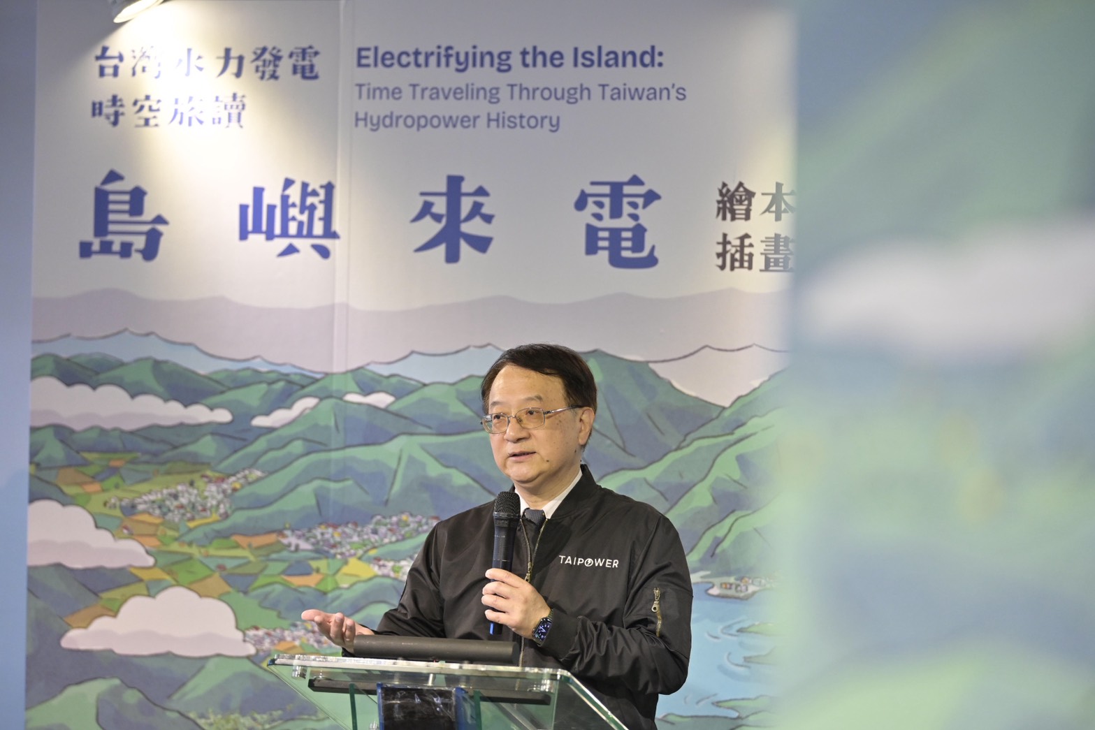 繪本插畫展開幕活動中,蔡志孟副總經理致詞,分享電力歷史