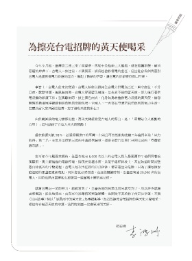 編者的話 為擦亮台電招牌的黃天使喝采 9 98 6,000 20,000 總編輯