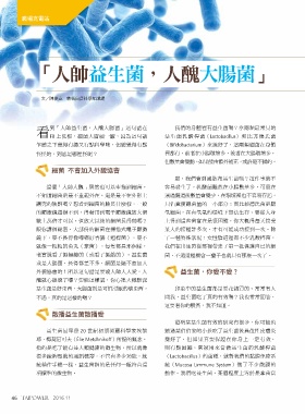 職場充電站 職場充電站 「人帥益生菌,人醜大腸菌」 文/陳俊堯 轉載自泛科學知識網 FB Lactobacillus Bifidobacterium 細菌? 不會加入外貌協會 散播益生菌散播愛 益生菌,你愛不愛? 20 Lactobacillus Elie Metchnikoff Mucosa Limmune System 46 2016.11