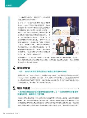 經營線上 經營線上 5 19 105 97 104 2016 FRP 1 161kV 9 21 4. 電源開發處 10 月 21 日接待美國企業研究院及非擴散政策教育中心專家 AEI Gary Schmitt Henry Sokolski 10 21 5. 環境保護處 「高原燃氣複循環發電計畫環境影響說明書」及「台西風力發電計畫環境 影響說明書」編擬階段公開會議 4 2,000KW 22.9 56 2016.11