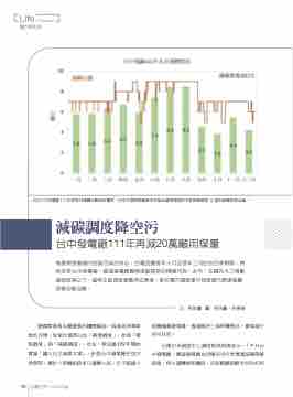 台電中央調度中心調度監林昭琦表示,「不只台 中發電廠,興達發電廠也同樣在空污季實施減碳降排 措施,停止運轉兩部機組,且依整廠限縮至 65% 的用